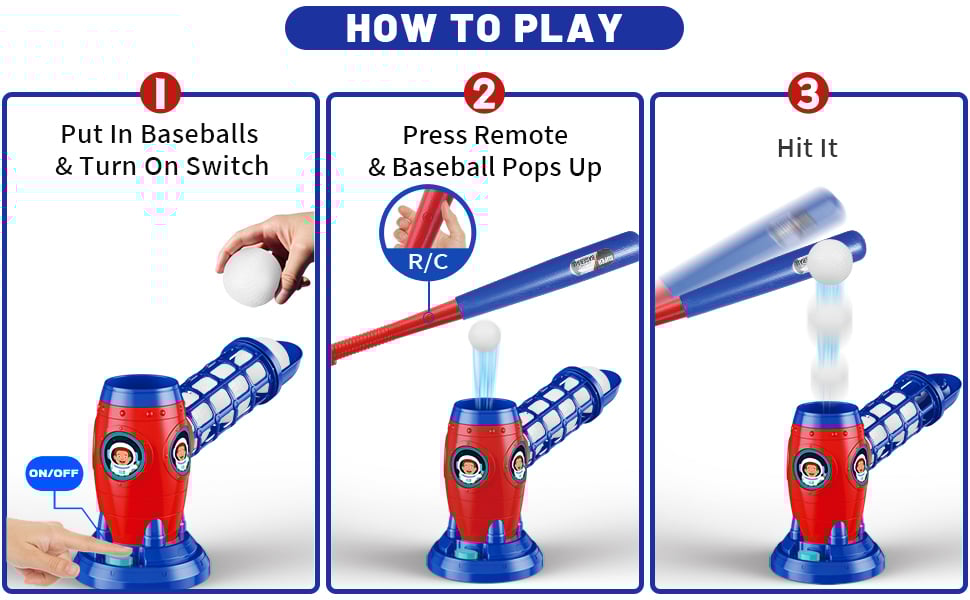 A: Simply press the button on the bat to launch a baseball. The launcher has a 3-second delay before it pops up the next ball.