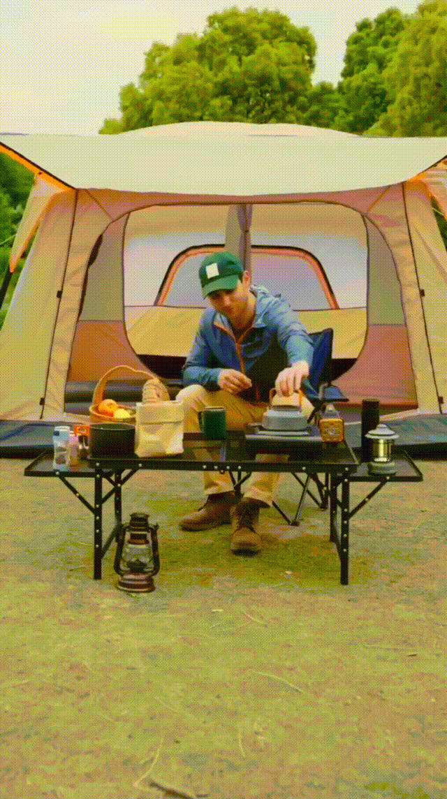 This is a large, foldable camping table that can be set up and ready to use in just 1-5 minutes. It comfortably accommodates 2-6 friends, providing ample space for snacking, chatting, and playing card games, making it an ideal way to spend a fun-filled day outdoors together.