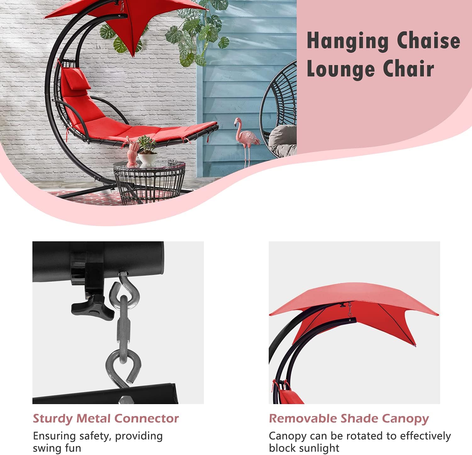 Adjustable Shade Canopy: Make the hanging chaise lounge ideal for both indoor & outdoor use